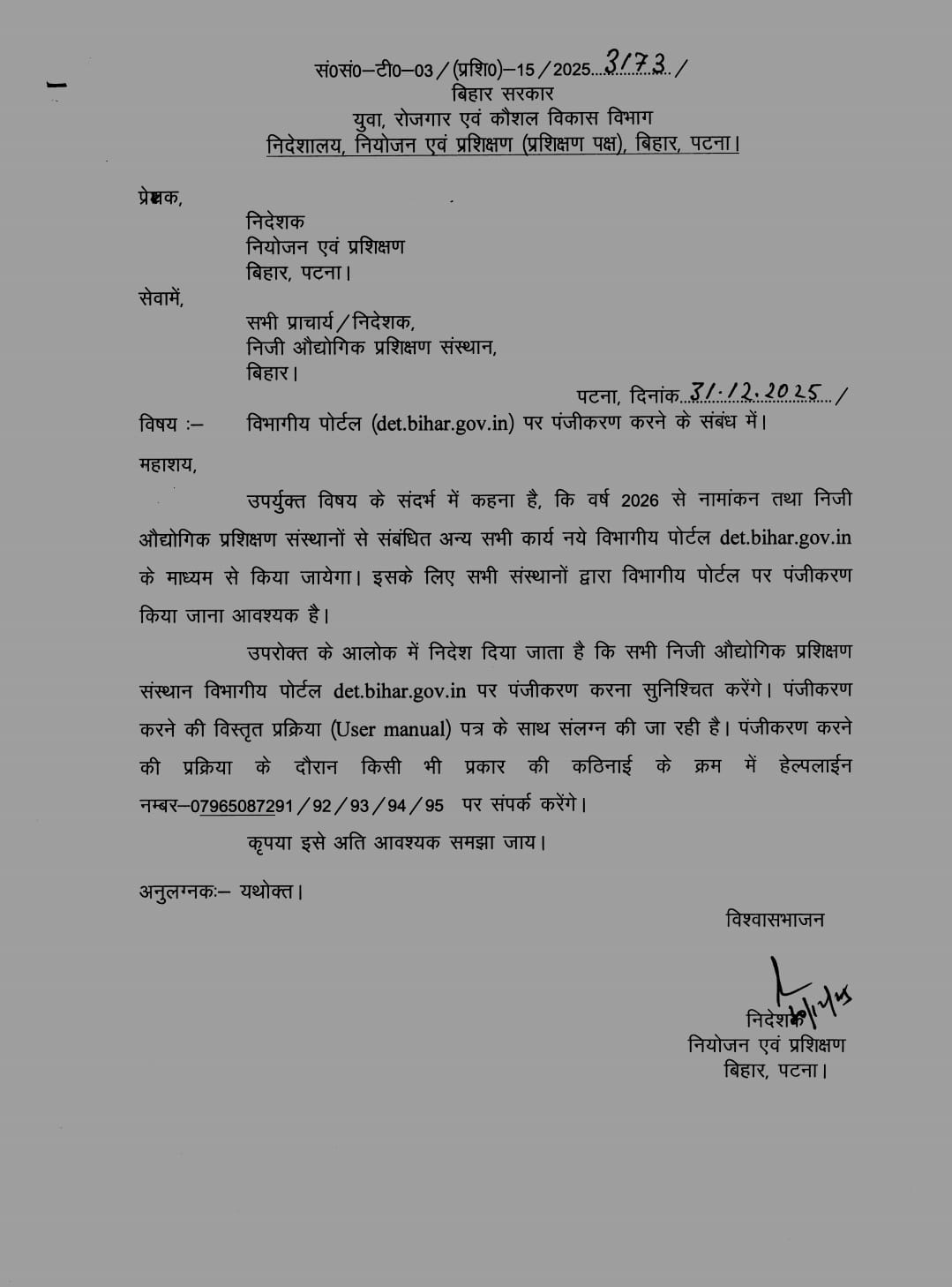 The ITI runs training courses on various trades for duration of one year & two years and on successful completion of the training as also on passing the qualifying examination the trainees are awared certificates (National Trade Certificates) by the National / State Council for Vocational Training. The concerned certificate has all India recognition and appointments in various Govt., departments and PSUs, especially Railways are made on basis of this qualification. On passing, the trainees have good assurance of getting jobs.